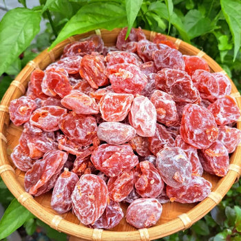 Salted Seedless Red Plum Xi Muoi Do Khong Hat is a savory and tangy snack made from seedless red plums that have been preserved with salt....