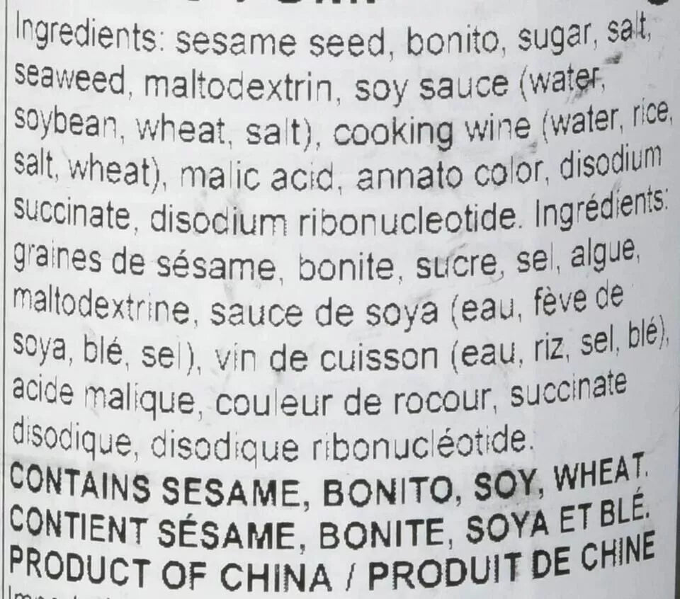 - Key ingredients: Dried bonito flakes, seaweed, sesame seeds, and seasonings.