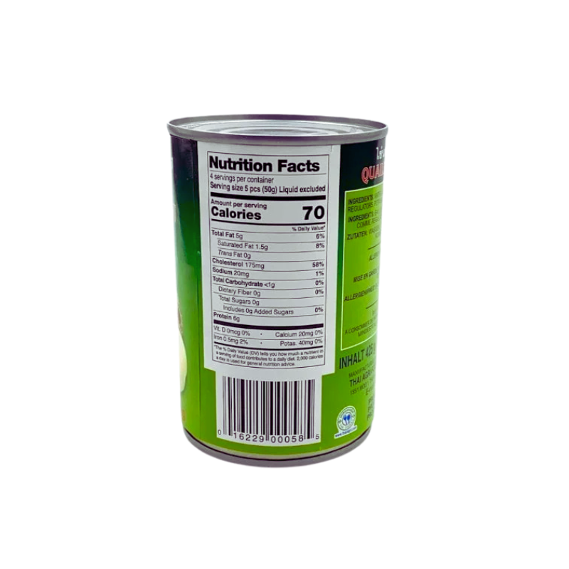 Aroy-D Quail Eggs are pre-boiled, peeled, and conveniently canned, ready to eat right out of the can. With their natural, rich flavor and tender texture, they are perfect for everyday dishes such as noodles, soups, porridge, salads, or simply warmed and enjoyed for breakfast.
