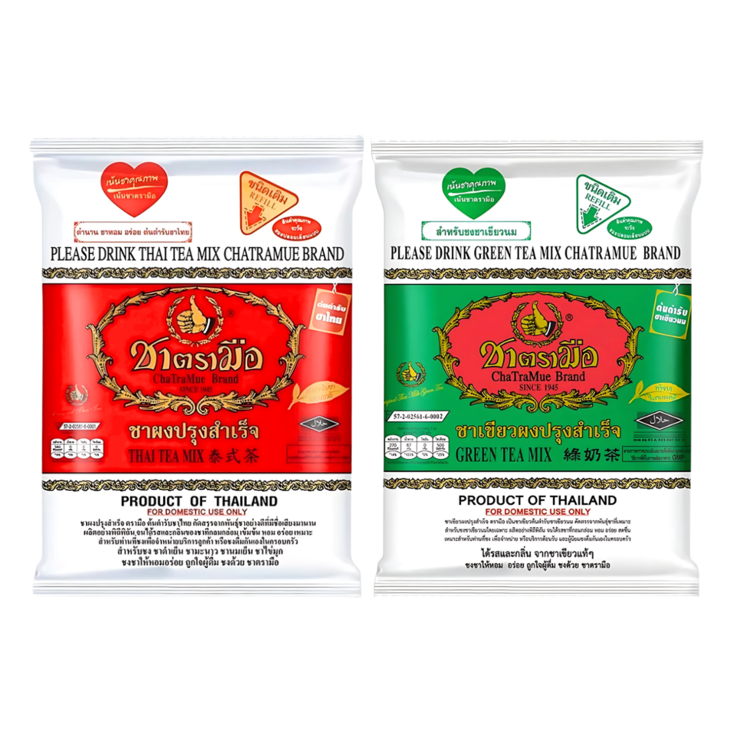 Enjoy authentic Thai flavors with the ChaTraMue Tea Mix Combo – Thai & Green Tea.