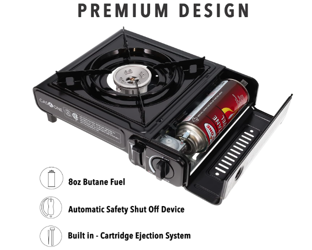 - High Output - Most Fuel Efficient Butane Portable Stove On The Market - Boils Water quickly with 7,650 BTU Evenly Compared To Compeititors Portable Stoves/ To Be used with 8oz Butane Canister Only (Fuel Sold Separately)