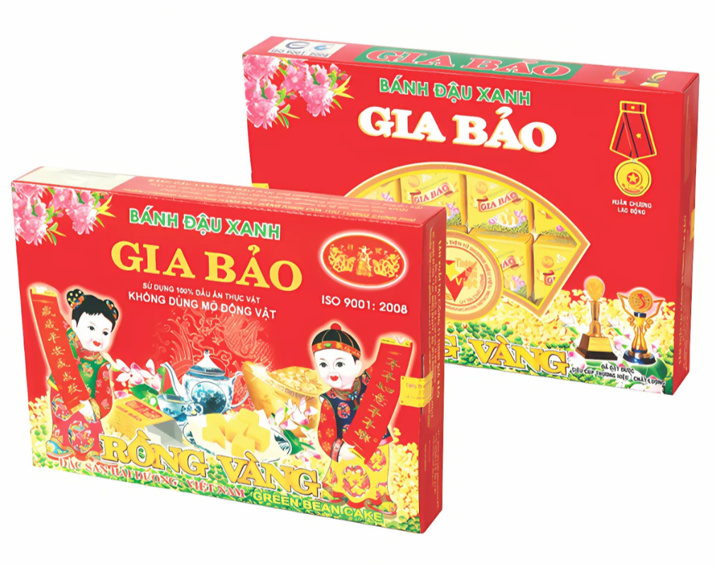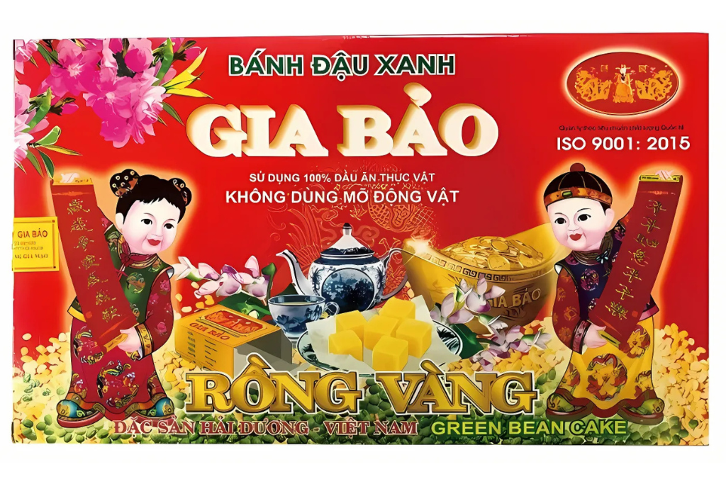 Gia Bao Golden Dragon Green Bean Cake is a traditional Vietnamese delicacy made from finely ground green beans, offering a smooth, melt-in-your-mouth texture and a naturally sweet flavor. Produced in Hai Duong, Vietnam, this specialty treat is crafted using 100% vegetable oil without any animal fat, making it a light and healthy snack. It pairs perfectly with tea and is often enjoyed during festive occasions or given as a thoughtful gift.