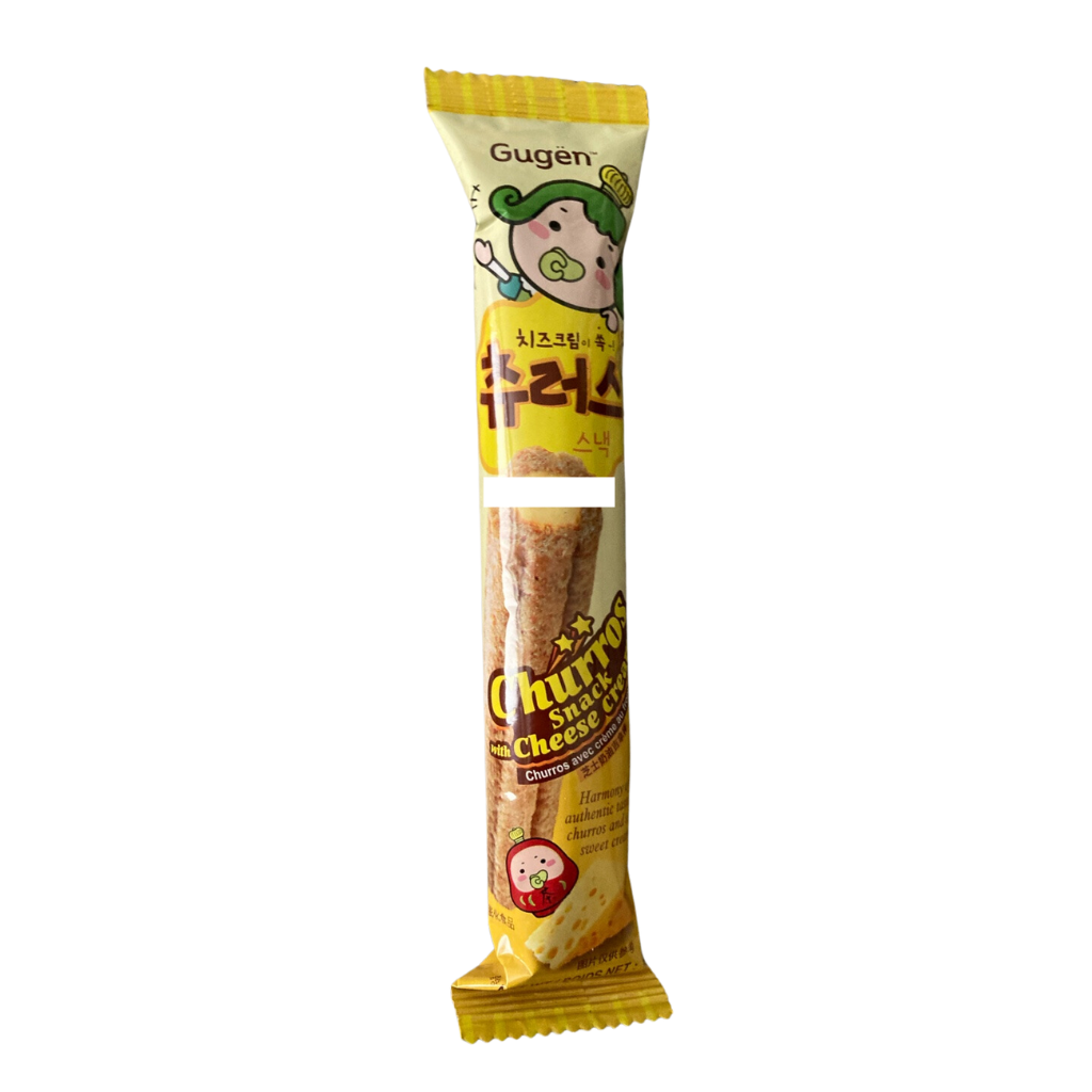 Gugen Churros Snack With Cheese Cream is a savory and satisfying snack inspired by the classic churros, but with a cheesy twist. These crispy, stick-shaped treats are filled with rich, creamy cheese, offering a delightful combination of crunch and smoothness in every bite. Perfect for enjoying on the go or as a quick treat, this snack pairs the familiar churro texture with a savory cheese flavor that sets it apart from traditional sweet variations.