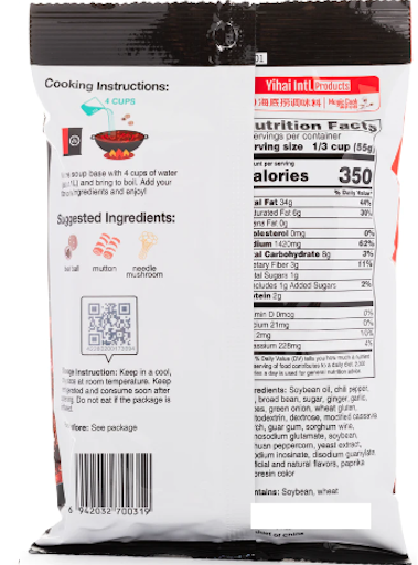 Looking to spice up your life? Look no further than the Haidilao Hot Pot Seasoning Soup Base Spicy Flavor. Packed with savory, delicious flavor, this oil-based spicy hot pot base is sure to get your mouth watering and your nose running without being too greasy! Add in your favorite mix of veggies, meat, noodles, or other favorites for high-quality hot pot at home. Use the soup base in a stir-fry for an extra kick or as a tasty supplement to a sauce for your hot dishes. The 220g package is perfect to use for a full meal or split up into smaller portions.