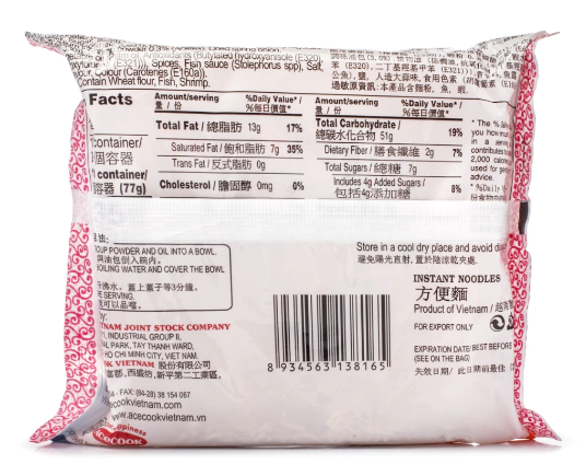 Hao Hao Mi Tom Chua Cay (Hot Sour Shrimp Flavor Noodle)