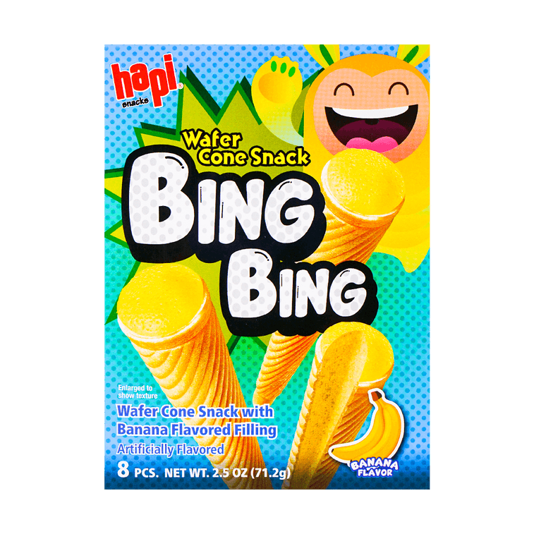 Hapi Snacks Wafer Cone Banana Flavored is a light and crispy wafer cone snack with a smooth banana-flavored cream filling. The outer cone has a delicate crunch that complements the sweet, tropical banana filling, creating a delightful balance of textures and flavors.