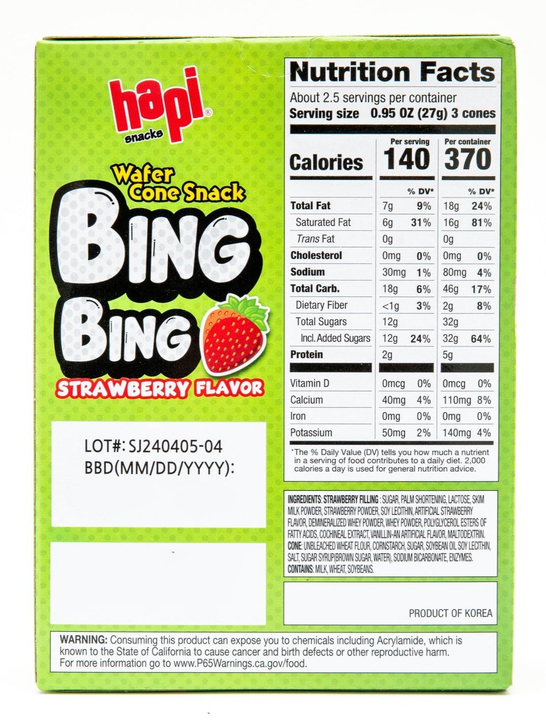 Hapi Snacks Wafer Cone Snack Strawberry Flavored features a crispy wafer cone filled with a smooth, creamy strawberry-flavored filling. Each bite combines the light crunch of the cone with a sweet, fruity strawberry taste, making it a fun and satisfying treat. Individually wrapped for convenience, these snacks are perfect for sharing or enjoying on the go.
