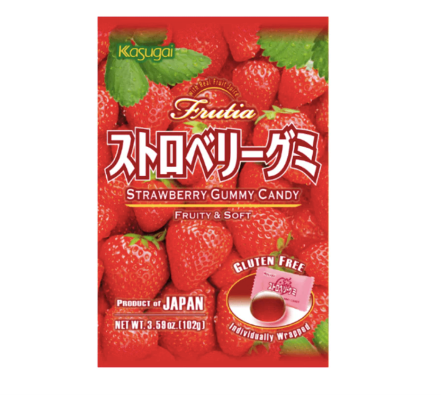 Kasugai Frutia Strawberry Gummy Candy is a chewy, fruity snack made from real strawberry juice, delivering a sweet and slightly tangy flavor with each bite. These gummies are known for their soft texture and authentic fruit taste, making them a favorite for both kids and adults who enjoy fruit-flavored candies.