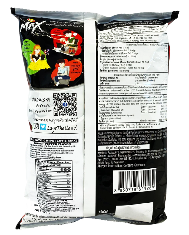 Lay's Max Potato Chips - Ghost Pepper Flavor 1.4oz (40g)