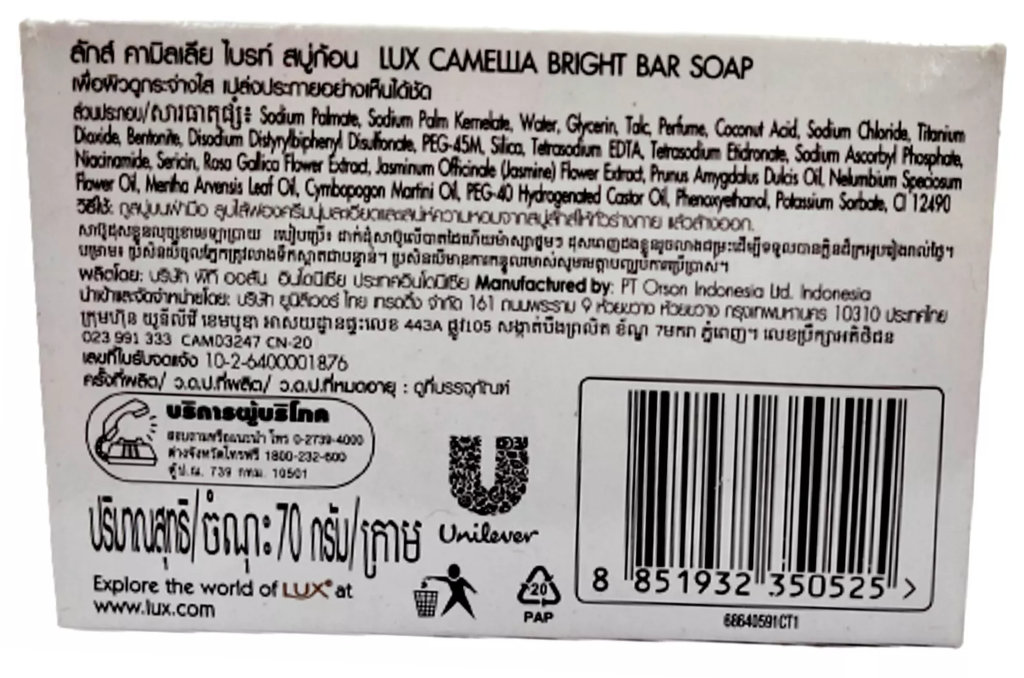 Lux Camellia Bright Soap is a luxurious beauty soap infused with camellia flower extract. It gently cleanses while enhancing skin radiance, leaving it soft, smooth, and glowing. With a rich, floral fragrance, it provides a pampering and refreshing bathing experience. Suitable for daily use.