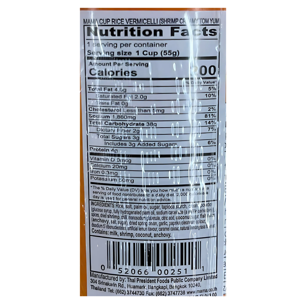 Mama Cup Rice Vermicelli Shrimp Creamy Tom Yum offers a delectable twist on the classic Tom Yum flavor. This cup features tender rice vermicelli in a rich, creamy, and tangy broth infused with the bold flavors of shrimp, lemongrass, lime, and chili. Enhanced with dried herbs and spices, it delivers an authentic Thai culinary experience in a convenient, easy-to-prepare format. Perfect for a quick yet flavorful meal.