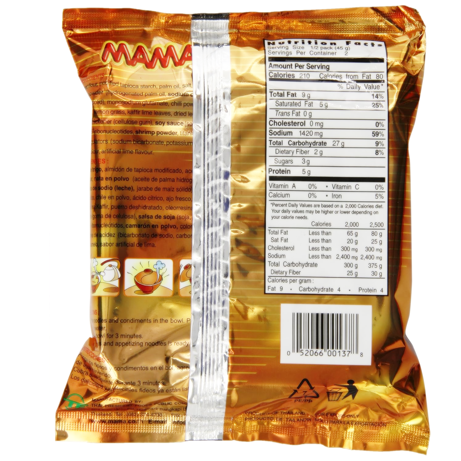 Satiate your Thai food cravings The savory flavors of shrimps and fish sauce, complemented by the kick of chilies and zesty spices are packed into the soup base of MAMA spicy noodles. Coupled with noodles that are chewy with loads of satisfying bite when cooked according to the recommended time, allaying those hunger pangs any time of the day (or night!) is a cinch!