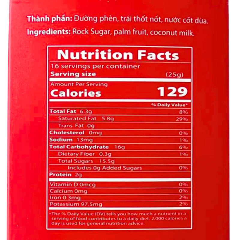 Minh Thong Palm Sugar Coconut Candy 400g is made from premium wax coconut blended with natural palm sugar, offering a rich, creamy flavor with a soft and chewy texture. This authentic specialty from Ben Tre, Vietnam, is mildly sweet and perfect to enjoy with hot tea or as a thoughtful gift for any occasion.
