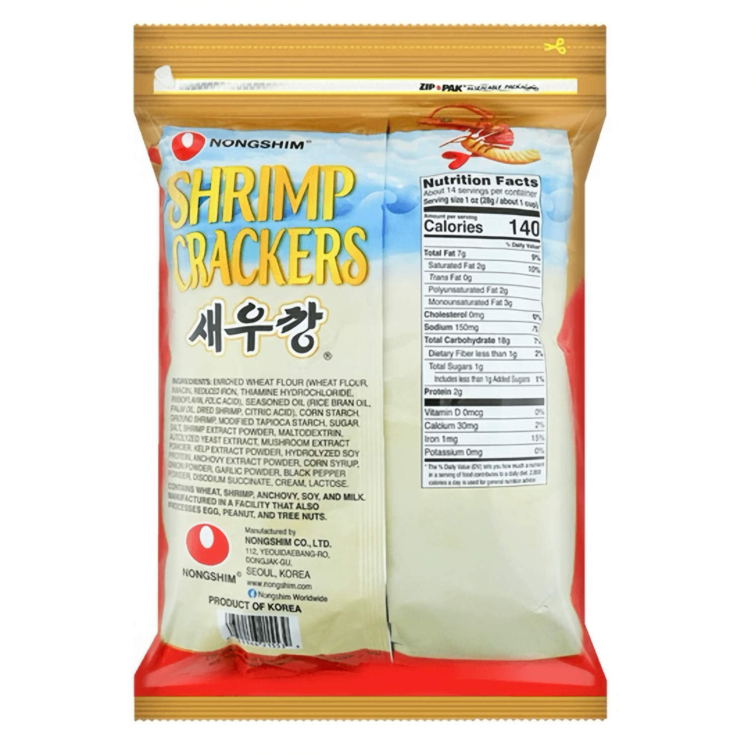 Introduce your tastebuds to the satisfying crunch of Nongshim Shrimp Flavored Crackers. Made with real shrimp, these crackers pack a deliciously savory punch that will keep you coming back for more. And with 14.1oz in each package, you'll have plenty to savor and share. Try them today and elevate your snacking experience with Nongshim.