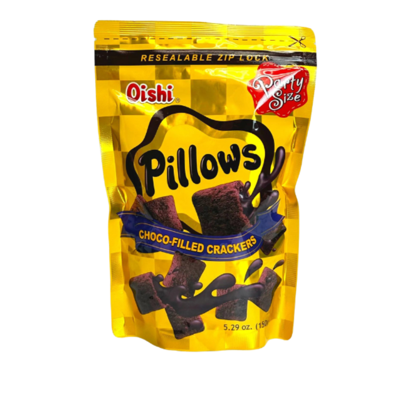Oishi Choco Pillows Crackers 150g – Enjoy crispy, pillow-shaped crackers filled with smooth, creamy chocolate that melts in your mouth. Each bite delivers the perfect balance of crunchiness and sweetness, making it an irresistible treat for chocolate lovers of all ages. Ideal for school, work, movie nights, or anytime you crave a delicious snack.