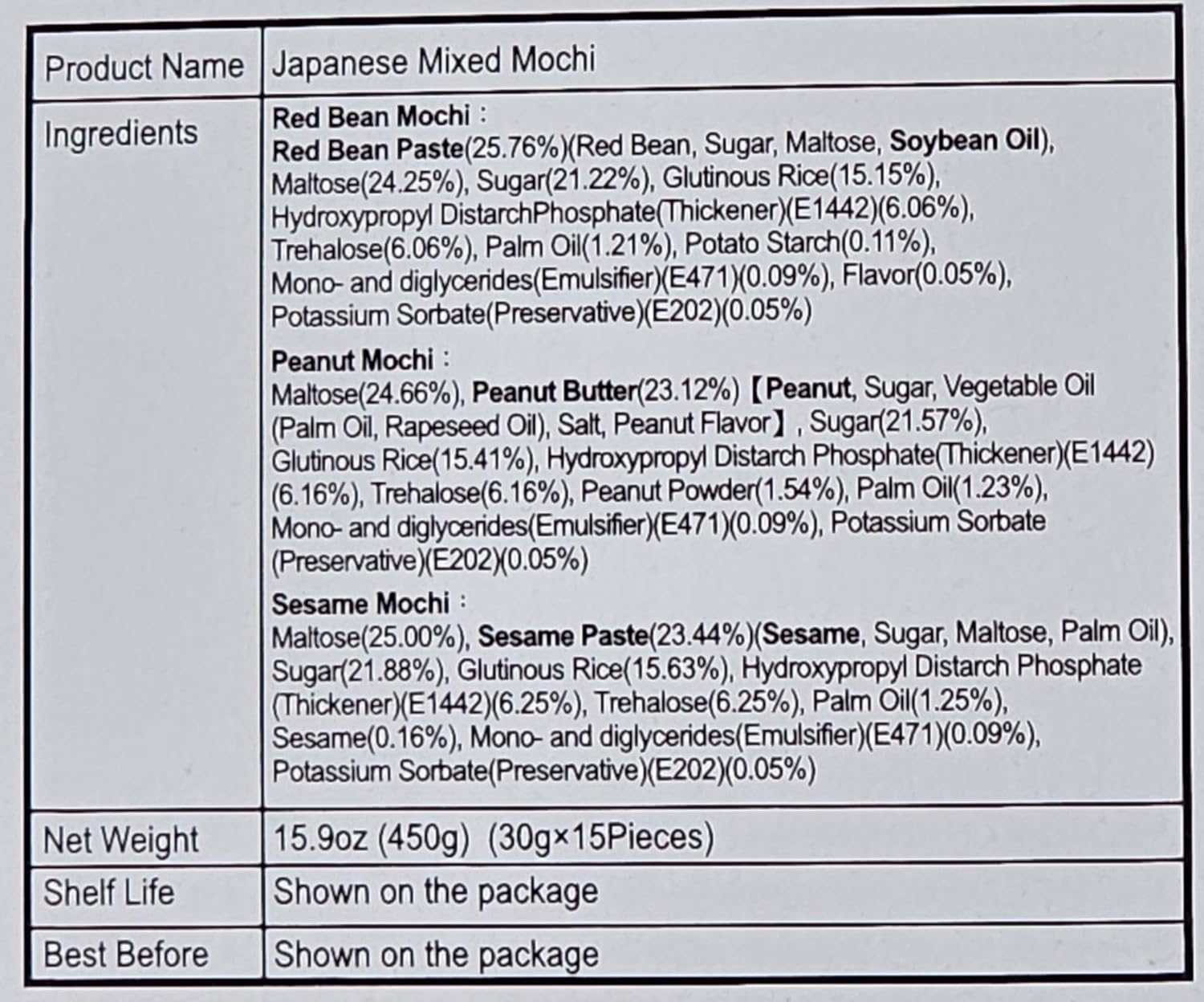 Royal Family Japanese Rice Cake Mochi Mixed (Red Bean, Peanut, Sesame) 15.9 oz