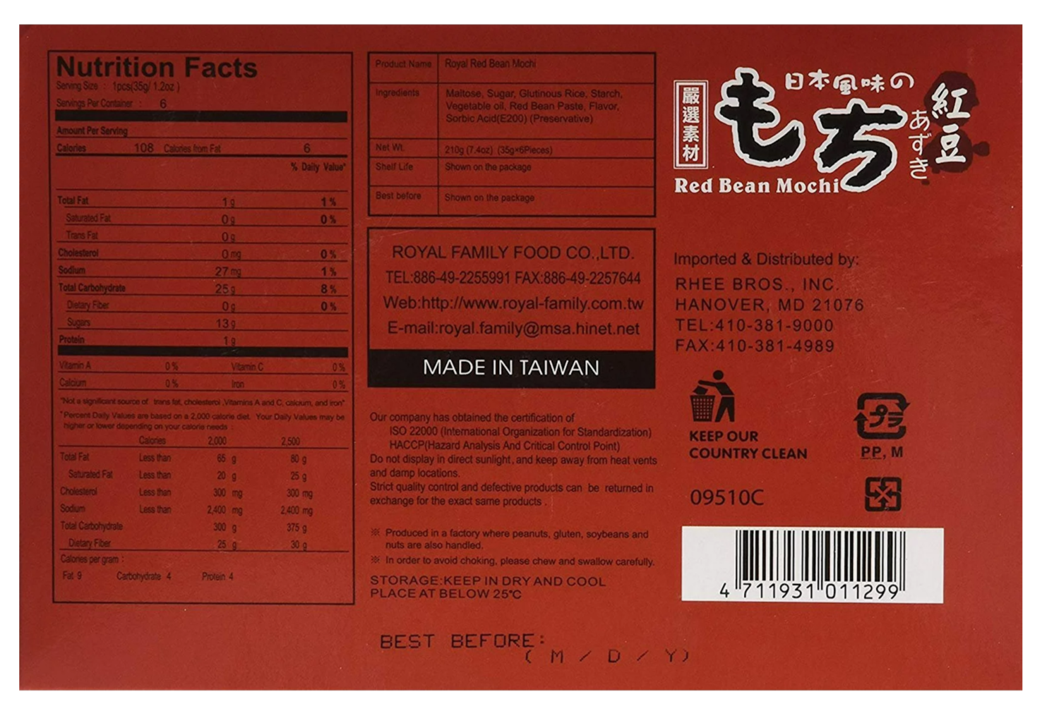 Royal Family Japanese Rice Cake Mochi Daifuku (Red Bean) 210g