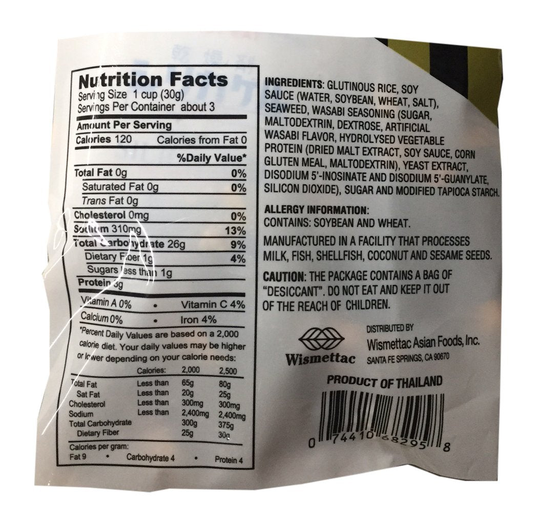 **Shirakiku Nori Maki Arare Rice Crackers With Seaweed Wasabi Flavor** are Japanese rice crackers wrapped in seaweed with a wasabi twist. These crunchy snacks have a unique blend of mild saltiness from the rice cracker, umami from the seaweed, and a hint of wasabi's spicy, tangy kick—perfect for those who enjoy a bit of heat with their snacks.