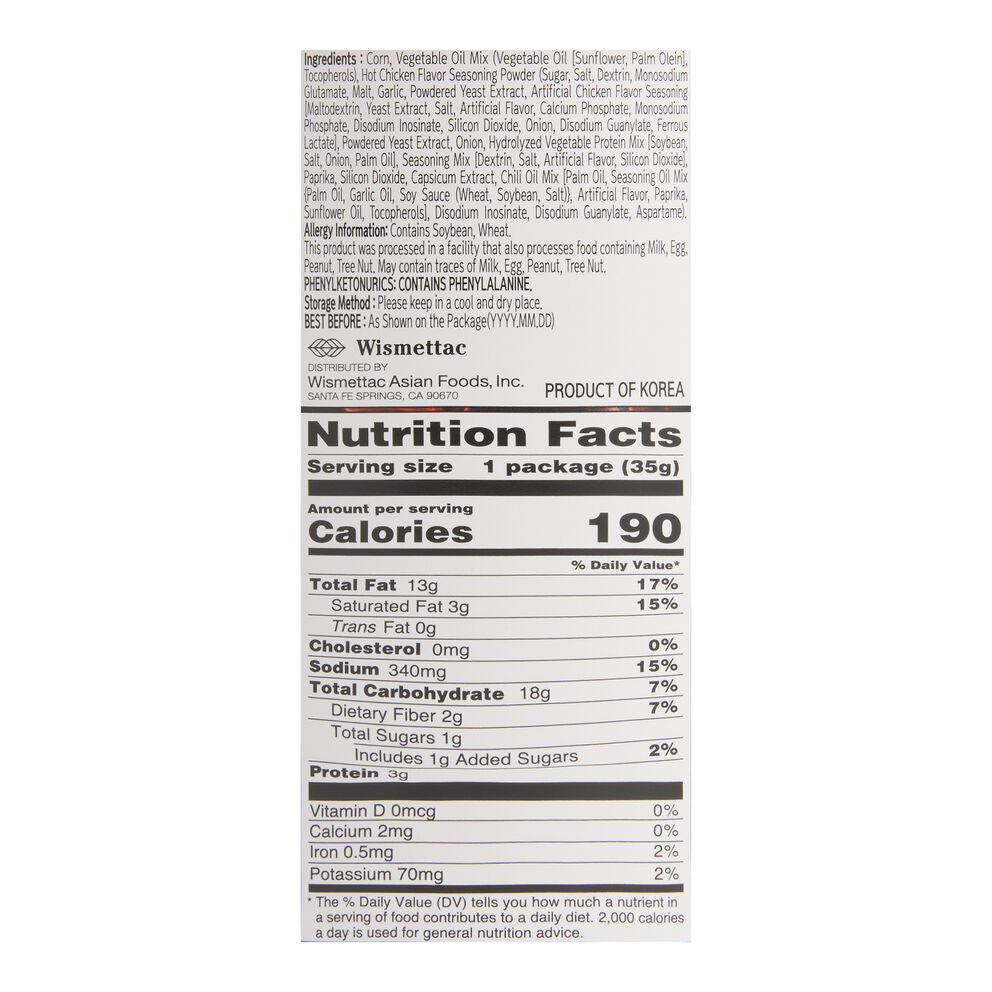 **Shirakiku Spicy Popcorn** is a flavorful snack that combines the classic crunch of popcorn with a bold and spicy seasoning. Made by Shirakiku, a brand known for its variety of Asian snacks and ingredients, this popcorn offers a delightful kick that appeals to those who enjoy a bit of heat. The popcorn is light and airy, making it an enjoyable snack for any occasion, whether it's movie night, a party, or just a casual treat. The spicy flavor adds an exciting twist, setting it apart from traditional popcorn snacks. Perfect for sharing or for enjoying on your own, Shirakiku Spicy Popcorn is a must-try for spice lovers!