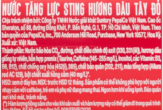 Sting helps the body rehydrate, restore energy, and provides vitamins C and E to relieve thirst and fatigue. It also includes strawberries for a light and comfortable feeling. We guarantee genuine quality and safety.