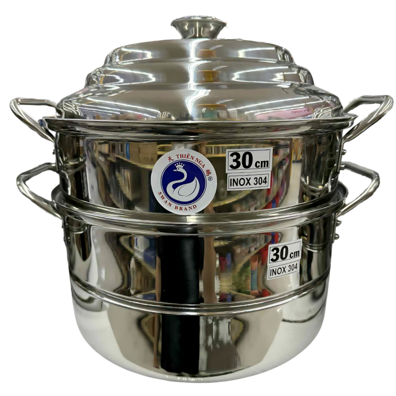 Enjoy cooking your favorite dishes with the Swan Brand 3-Tier Steamer Pot – a spacious 30cm design perfect for steaming whole chickens, steamed buns, dumplings, sticky rice, fresh vegetables, and seafood with ease.