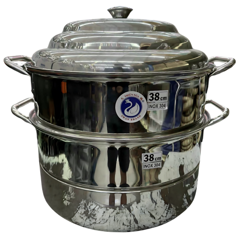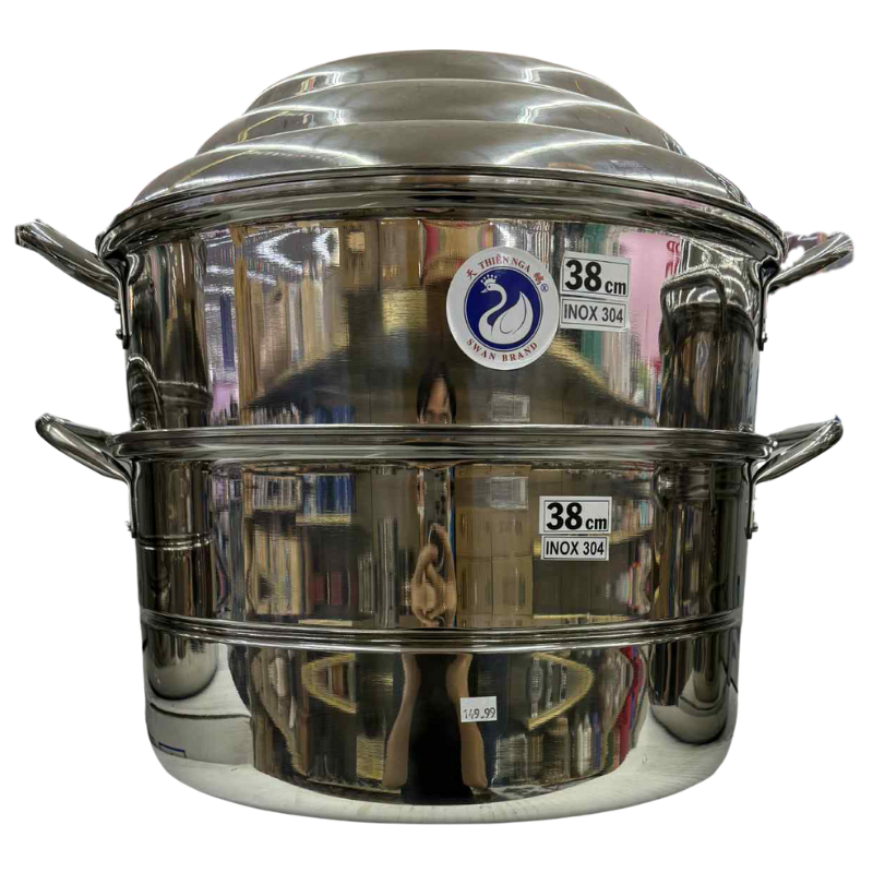 Enjoy cooking your favorite dishes with the Swan Brand 3-Tier Steamer Pot – a spacious 38cm design perfect for steaming whole chickens, steamed buns, dumplings, sticky rice, fresh vegetables, and seafood with ease.