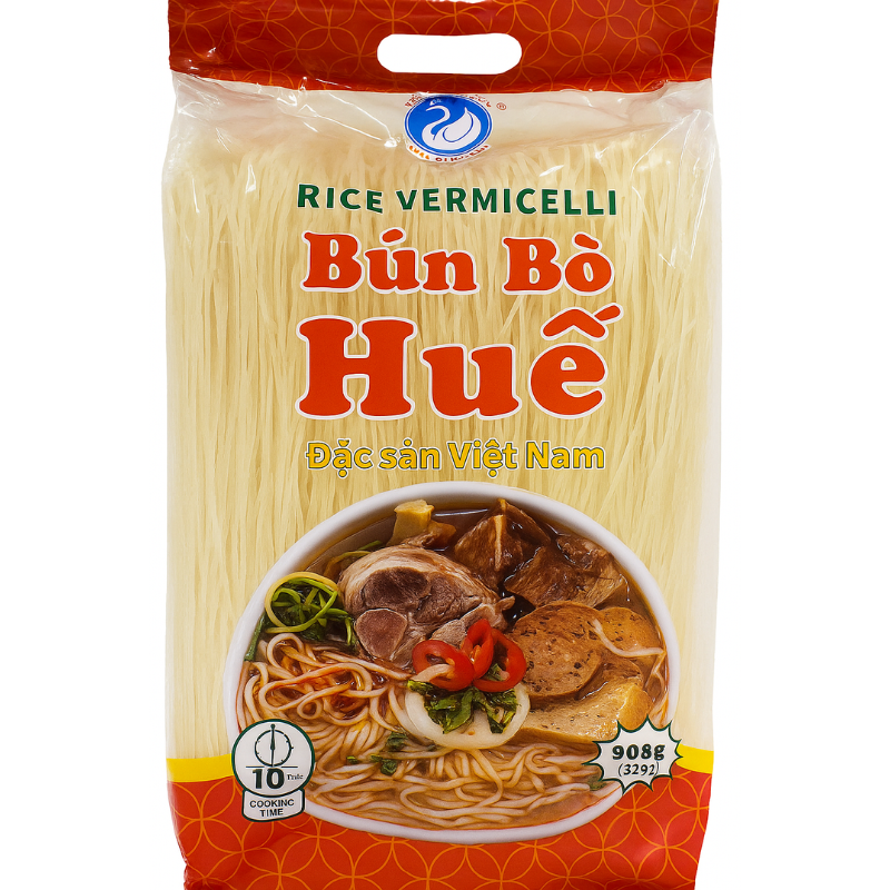 Swan Brand Rice Vermicelli (Bun Bo Hue) 32oz is the perfect choice for those who crave the bold, authentic flavors of traditional Bun Bo Hue. Made from premium rice, the noodles are medium-thick with a naturally chewy texture that holds up beautifully when cooked—never mushy or falling apart. They absorb the spicy, aromatic broth exceptionally well, enhancing every bite with rich, savory depth. With a generous 32oz (908g) pack, it’s ideal for family meals or cozy gatherings, bringing the true taste of Central Vietnam right to your table.
