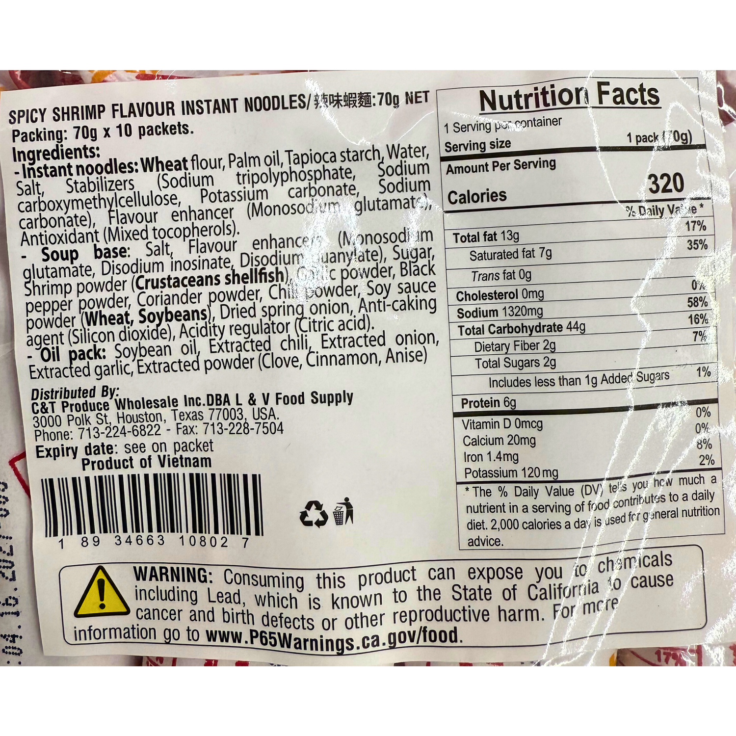 VI HUONG Spicy Shrimp Flavour Noodles 70g