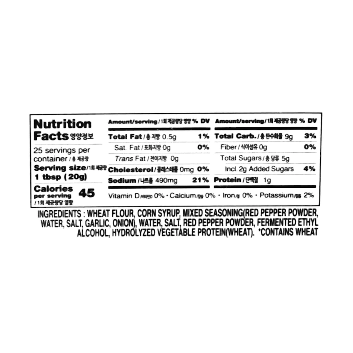 Gochujang is a signature Korean ingredient made from sun-dried red chile pepper flakes (Gochugaru), glutinous rice, fermented soybean, and salt. As an essential part of Korean cooking, the red paste creates a deep and spicy flavor with a subtle fiery aroma. Thick and spicy, Gochujang gives sweet heat to everything from tteokbokki to Korean barbeque.